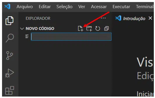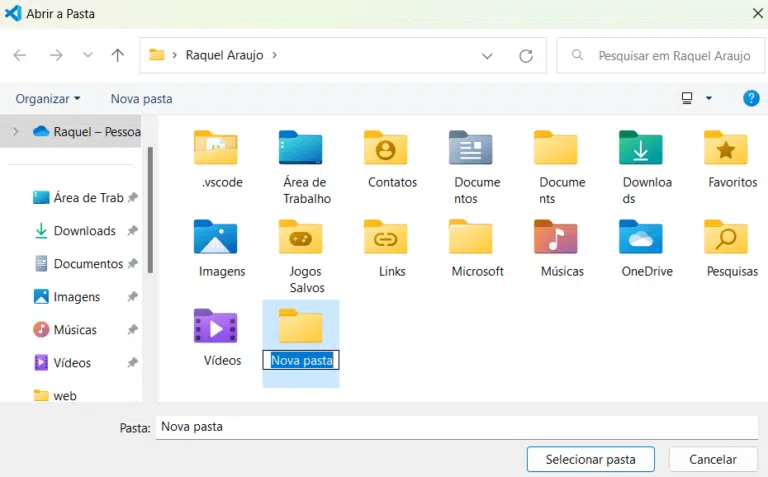 Após instalado, abra seu VS Code e crie uma nova pasta onde será salvo o seu documento HTML.