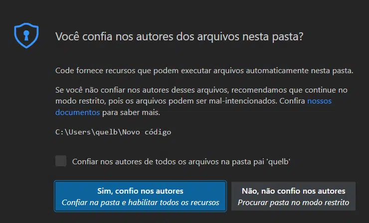 em “sim, confio nos autores” porque esta é uma pasta que nós mesmos estamos criando.